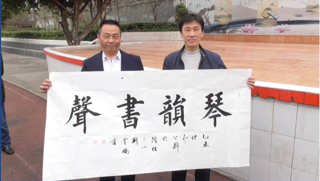 講座結束后,學校領導及教師獲贈荊霄鵬老師作品并簽名留戀。