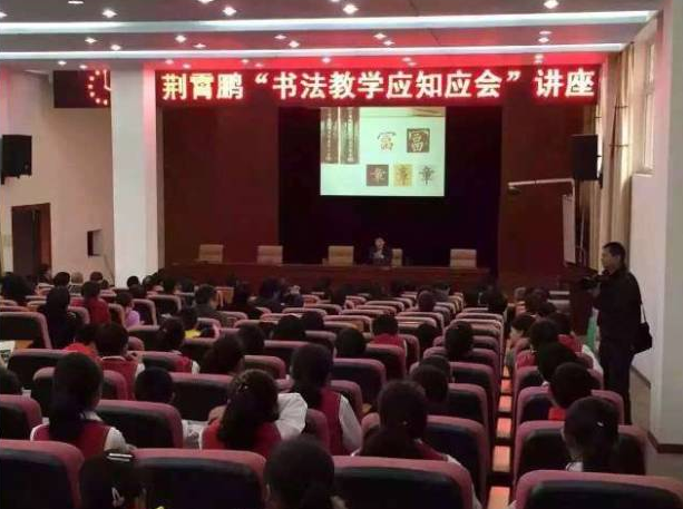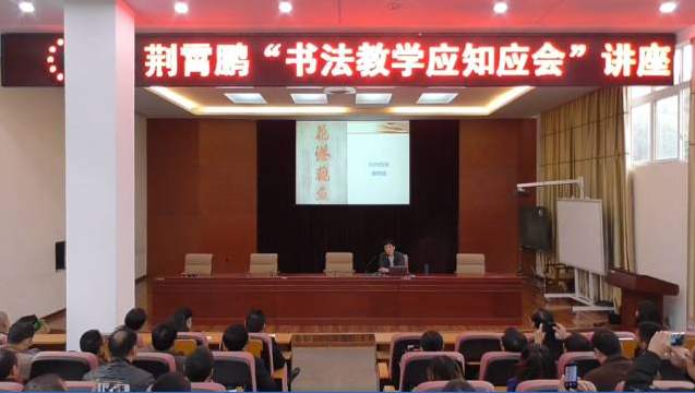 下午3點30分荊霄鵬老師書法專題講座——書法教學應知應會,在學校多功能教室準時開始,荊霄鵬老師就:“書法與寫字”、“技與藝”、“書法的相關名詞”等相關問題作出了專業解答。學校領導以及學校書法骨干教師也與荊霄鵬老師現場問答互動,期間笑聲、掌聲不斷。