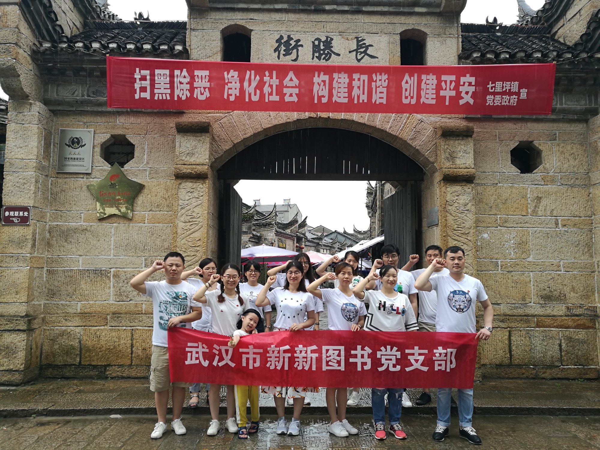 黨支部一行跟隨著講解員先是參觀了位于七里坪鎮的長勝街,大家為這條擁有400多年歷史的古街的非凡魅力所折服,在聽完發生在革命戰爭時期的這段傳奇的歷史后,這條街在大家的心目中又煥發了新的光彩,“中國革命第一街------長勝街”的美譽果然名不虛傳。
