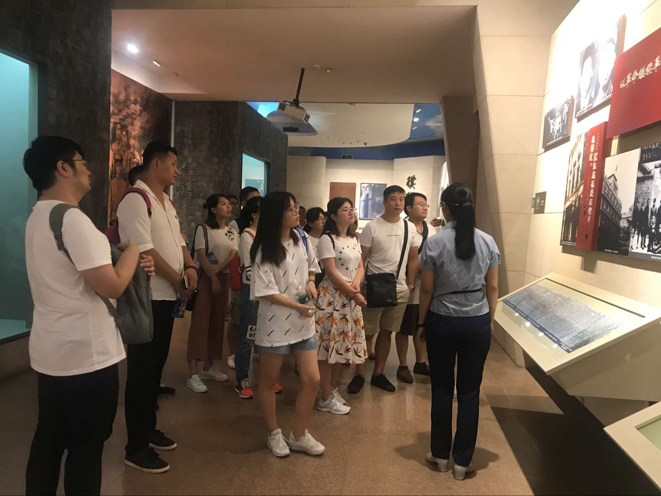 革命烈士紀念館里,講解員聲情并茂的講解帶領大家回顧了當時的革命情形,革命烈士不畏強暴、抗戰到底的信念深深地感動了在場的每一個人,動情處,大家在講解員的帶領下唱起了上午學會的歌曲《八月桂花香》。