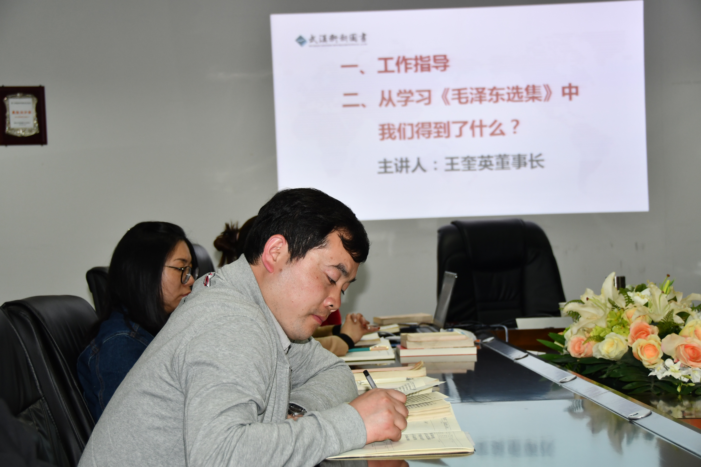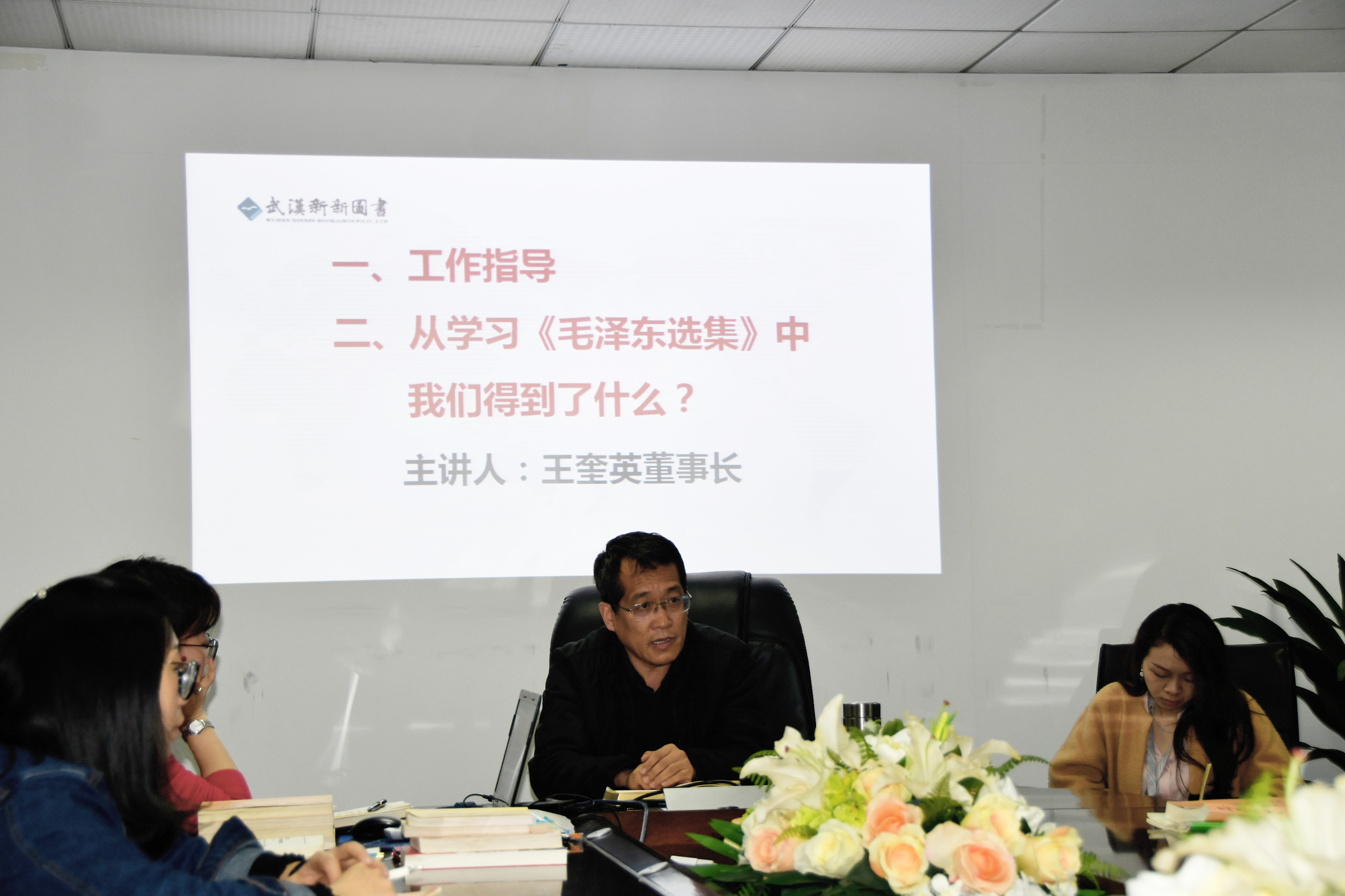 最后,王總進行了總結發言,對大家今天學習《毛澤東選集》心得討論表示了積極的贊許,王總指出,武漢市新新圖書有限公司也是在踐行毛澤東思想的道路上發展、成長至今,并且支撐企業在近幾年高速發展,王總接下來也提出要求,公司要繼續一心一意為員工多著想,讓員工提高收入,同時加強學習,增強幸福感和獲得感,齊心協力為武漢市新新圖書有限公司美好的明天奮斗。