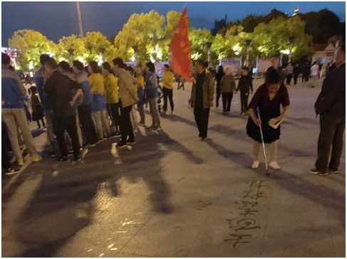 駐馬店世紀(jì)廣場(chǎng)偶遇練帖者。上前問(wèn)之,練的是墨點(diǎn)字帖。練者說(shuō),新華書(shū)店買(mǎi)的,正版,好得很!