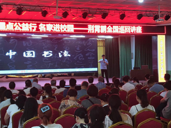2019年8月19日上午,由山西省運城市絳縣教科局、縣文聯、縣新華書店主辦,絳縣教師進修學校、絳縣高級中學承辦的墨點公益行“名家進校園”——荊霄鵬老師書法知識公益講座走進絳縣中學。講座由縣教育工會主席彭振主持,縣教科局黨組成員盧愛民致辭,縣文聯主席程一娜、縣政府督學王俊燕等參與,全縣書協會員、中小學書法專職教師及絳縣中學部分學生近二百人認真聽取了此次講座。