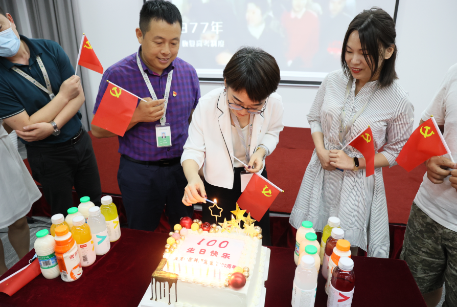 在一片掌聲中,武漢市新新傳媒集團黨支部書記盛海艷推出了黨支部專為中國共產(chǎn)黨100歲生日訂制的蛋糕,在場黨員以飽滿的熱情為中國共產(chǎn)黨獻唱了《歌唱祖國》,共同分享了中國共產(chǎn)黨百年華誕的喜悅。