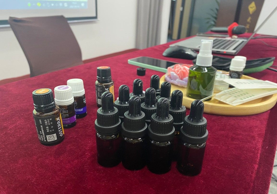 活動(dòng)開(kāi)始,徐老師給大家介紹了芳香療法,即利用天然植物萃取的芳香分子(精油或純露),借由按摩、涂抹、吸聞等方式,調(diào)理并改善人的身體與心理狀態(tài)的方法。徐老師給大家科普了精油知識(shí),大家了解到純天然的植物精油有殺菌抗炎、愈合、鎮(zhèn)靜舒緩、排毒等功效,可以調(diào)節(jié)情緒和身體的生理功能。