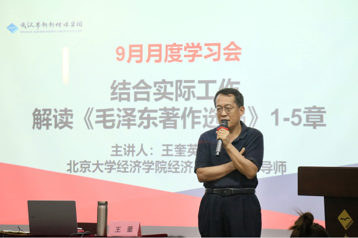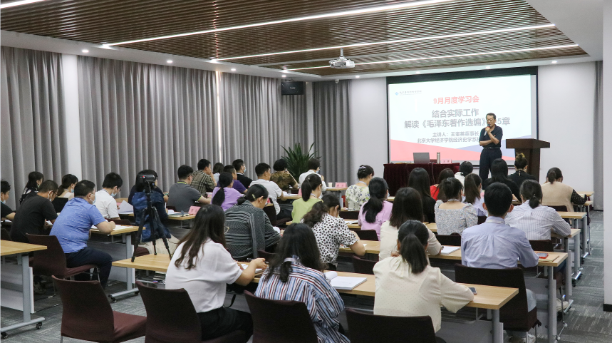 本次月度學習會主題為《解讀<毛澤東著作選編>1-5章》,集團董事長、北京大學校外博士生導師王奎英先生為大家系統地梳理了《毛澤東著作選編》前五章的知識要點,進一步闡述了《實踐論》和《矛盾論》在工作和生活中如何運用。