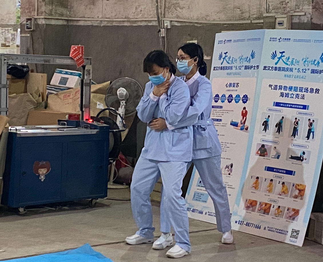 培訓(xùn)過程中,方泰醫(yī)院的醫(yī)生為大家生動講解了救護(hù)的基本知識,包括判斷意識、胸外按壓、人工呼吸等心肺復(fù)蘇的操作方式,以及處理異物卡喉的“海姆立克”救助法。護(hù)理人員給員工示范了心肺復(fù)蘇的全過程,以及成人和嬰兒異物梗阻的不同操作手法。