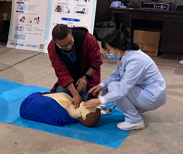 現(xiàn)場實操練習(xí)中,醫(yī)生準(zhǔn)備了仿真人模,大家在醫(yī)生的指導(dǎo)下依次演練了心肺復(fù)蘇及其操作方法,對于不正確的操作,醫(yī)生現(xiàn)場進(jìn)行了糾正指導(dǎo),整個培訓(xùn)現(xiàn)場的學(xué)習(xí)氛圍積極而熱烈。