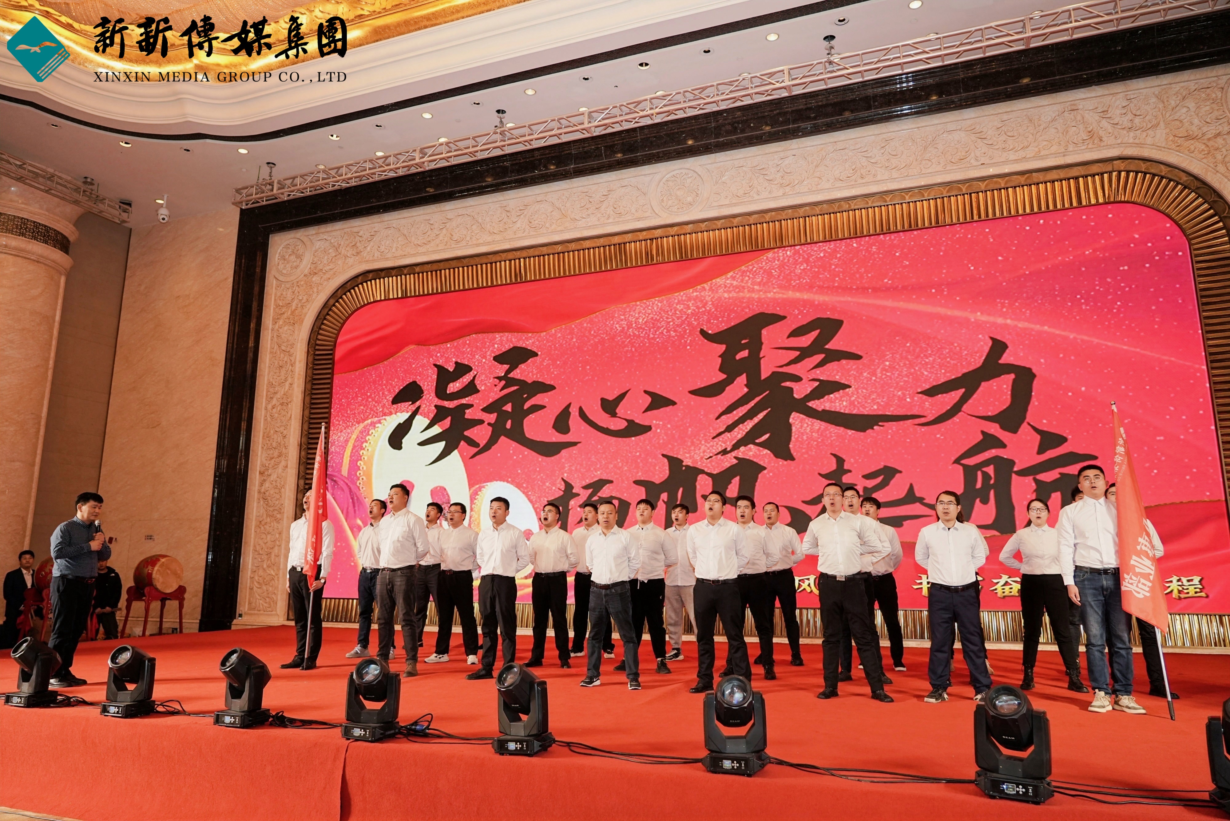 由新華藝術事業部、新華少兒事業部、民營藝術事業部、民營少兒事業部、電子商務中心和倉儲部各團隊組成的團隊誓師震撼上演。他們身著統一服裝,士氣高昂,擊鼓揚旗,共同宣誓,表達了對新一年工作的堅定決心和必勝信念。