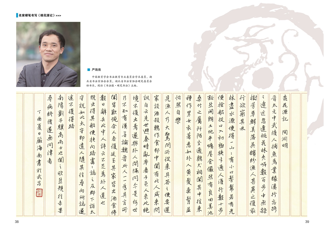 嚴海南,中國教育學會書法教育專業委員會學術委員,湖北省書協會員,湖北省書協硬筆委員會秘書長,中國硬協四屆理事,現任《書法報·硬筆書法》主編。多次擔任全國硬筆書法大展賽評委,出版有毛筆書法教程、硬筆書法字帖30余種。